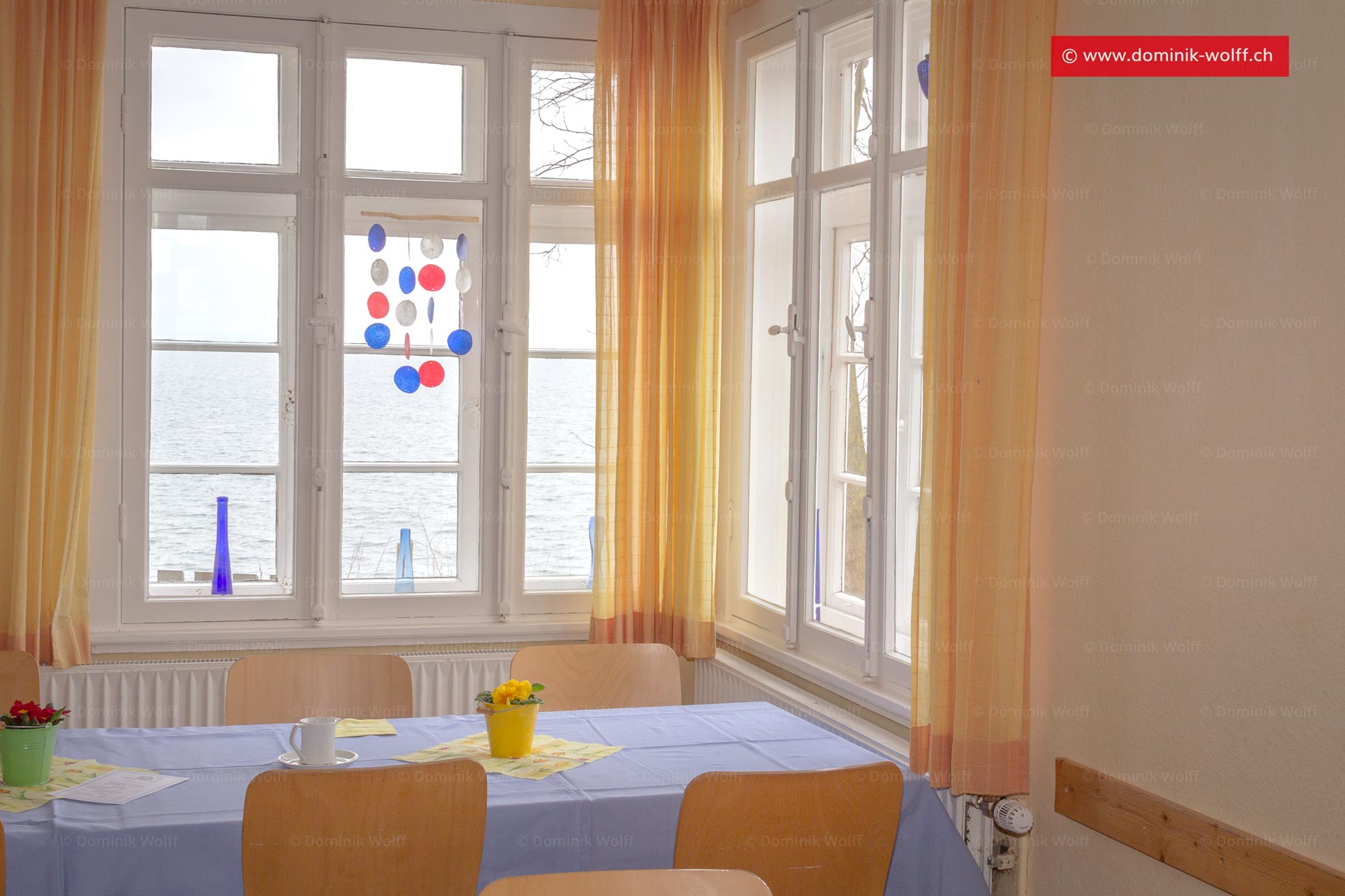 Essens- und Aufenthaltsraum im Erdgeschoss des Jugendhauses Seeblick, das direkt am Brodtener Steilufer in Lübeck Travemünde liegt.